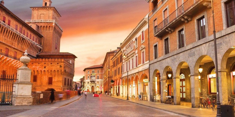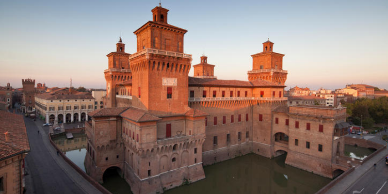 Día 5: Desayuno. Encuentro con el guía y visita de Módena. El centro histórico está lleno de suntuosos palacios como el Palacio Ducal, iglesias muy ricas, museos extraordinarios como la Galería Estense e importantes monumentos. El Duomo, Ghirlandina y Piazza Grande son sitios del Patrimonio Mundial de la Unesco. Almuerzo en un restaurante típico y traslado a Ferrara. Visita guiada de Ferrara: la familia Este lo gobernó durante más de tres siglos y le dio el aspecto que aún conserva hoy: una planificación urbana única que combina armoniosamente la Edad Media y el Renacimiento y la convierte en la primera ciudad moderna de Europa. Precisamente por esta característica, ha sido reconocida por la UNESCO como Patrimonio de la Humanidad. Alojamiento en hotel de 3 o 4 estrellas. Cena en hotel.