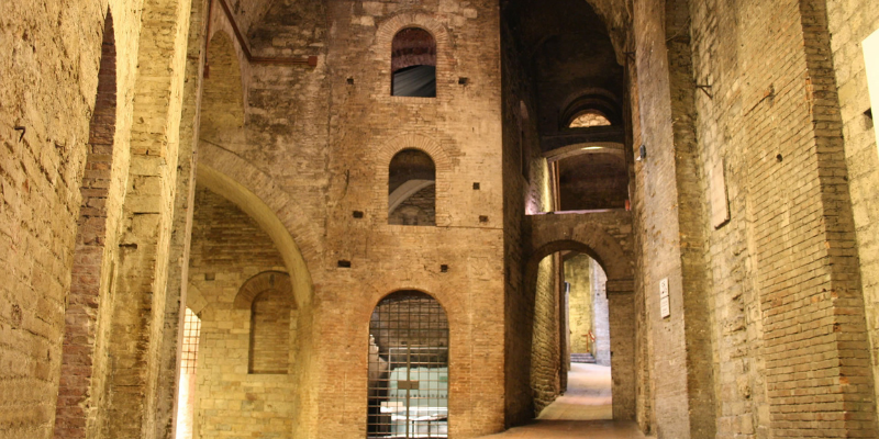 Esta mañana, exploramos el antiguo Ariminum, el final de la Via Flaminia. Empezamos por los restos del anfiteatro y continúe hasta el Arco Triunfal de Augusto, el arco romano más antiguo que se conserva que marca el final de la Via Flaminia. Caminando por el foro antiguo, nos dirigimos a la Domus del Cirujano una casa bien conservada que proporciona una valiosa evidencia de la ciudad prosperidad. Terminamos nuestra mañana con el Puente de Tiberio que trajo la Via Flaminia a la ciudad. y todavía está adentro. Después del almuerzo, nos dirigimos a Pesaro donde exploramos el Área Arqueológica de la Via dell’Abbondanza, que incluye los restos de una casa de élite del 1er. siglo después de Cristo repleta de mosaicos y la Catedral que tiene mosaicos que datan del 4to. y sexto siglos que son ricas en simbolismo.