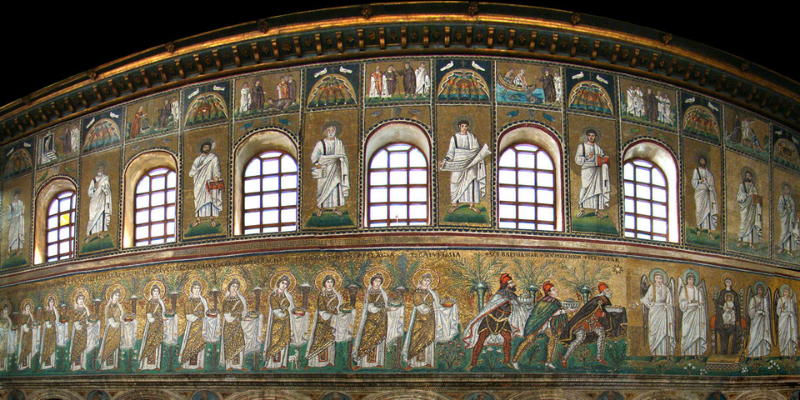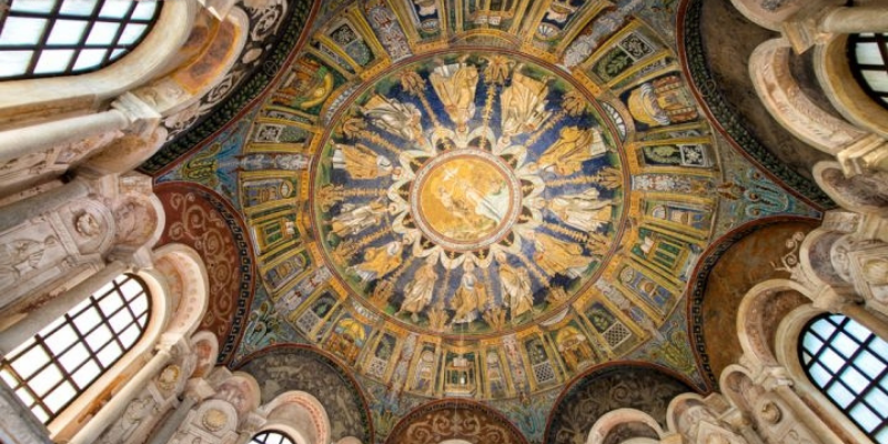 Comenzamos con una exploración del estilo del siglo V en la catedral y el baptisterio ortodoxo, y el superlativo trono de marfil de Maximiano del siglo VI en el Museo Arzobispal. Por la tarde, visitaremos el baptisterio arriano y en la gran iglesia palatina de S. Apollinare Nuovo de Teodorico. El diseño de la basílica del siglo V que proporcionó a la corte de Teodorico sus modelos más inmediatos, y la espléndida basílica de exvotos de San Giovanni Evangelista de Galla Placidia.