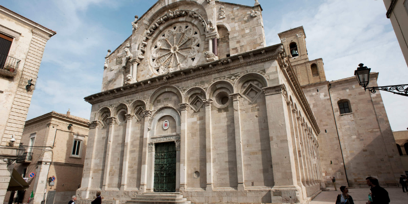 Canosa, Troia, Venosa. Canosa di Puglia tiene una catedral del siglo XI. La catedral de Troia está influenciada por el arte árabe y el románico pisano, y alberga columnas romanas reutilizadas. Salimos de Puglia hacia Basilicata: la impresionante pero inacabada Abadia de la Santisima Trinità en Venosa se construyó a partir del siglo XII sobre una iglesia paleocristiana. Regresamos a Puglia para pasar la última noche en Trani.