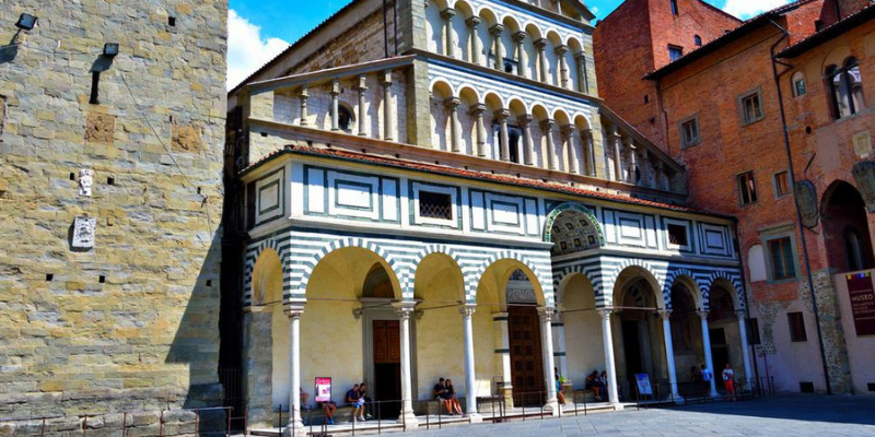 Pistoia. La excepcionalmente atractiva ciudad de Pistoia tiene importantes obras de arte y arquitectura. Los edificios incluyen el baptisterio octogonal y la catedral, ambos en un extremo de la plaza principal, y el hospital renacentista, Ospedale del Ceppo. La escultura incluye el púlpito de Sant’Andrea tallado por Giovanni Pisano, una de las mejores esculturas góticas al sur de los Alpes, y un retablo de plata único en la catedral, producto de 150 años de trabajo.