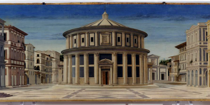 Urbino. El Palazzo Ducale creció durante los 30 años de patrocinio de Montefeltro hasta convertirse en el perfecto ejemplo del Renacimiento temprano, de la mayor importancia tanto para la arquitectura como para la escultura arquitectónica. La colección de pinturas del palacio incluye obras de Piero della Francesca, Rafael y Tiziano. Hay exquisitos frescos góticos internacionales de Salimbeni en el Oratorio de San Juan.