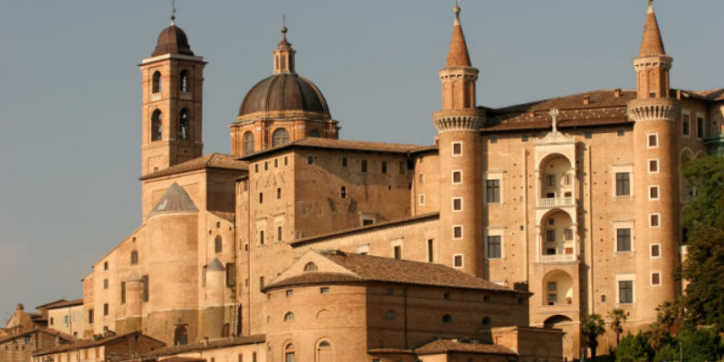 Urbino, por el contrario, es una fortaleza compacta en la cima de una colina con una historia muy diferente y una influencia en la cultura renacentista desproporcionada para su tamaño. El Palacio Ducal, construido por la dinastía Montefeltro durante varias décadas, es quizás el mejor edificio secular de su período. Piero della Francesca, Raffaello y Baldassare Castiglione fueron algunos de los que pasaron por sus exquisitos salones.