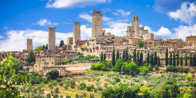 Desayuno. Mañana: Traslado privado hacia Volterra (PI) y alojamiento en Borgo Pignano, a pocos kilómetros de Volterra. Rodeado por las colinas de Volterra y 750 hectáreas de jardines y bosques privados, el Borgo Pignano se encuentra en el corazón de la campiña toscana y ofrece un restaurante y alojamiento con obras de arte y frescos del siglo XVIII. Visita de Volterra: Volterra, joya del arte etrusco, romano y medieval, es uno de los centros turísticos más importantes de la Toscana tanto por la riqueza de sus monumentos que abarcan treinta siglos de historia como por el procesamiento del alabastro, un típico y tradicional producto de la artesanía de la zona. El alabastro de Volterra se remonta a hace unos 7 millones de años, presente en túneles o canteras al aire libre. Es la más valiosa de Europa y cada cantera tiene un tipo diferente, en consistencia y apariencia. Su procesamiento requiere mucha experiencia. Visita a un laboratorio de Alabastro. Almuerzo en restaurante típico del centro. Tarde Traslado privado a San Gimignano: visita de San Gimignano, la «ciudad de las hermosas torres», declarada Patrimonio de la Humanidad por la UNESCO en 1990. Cena en el hotel.