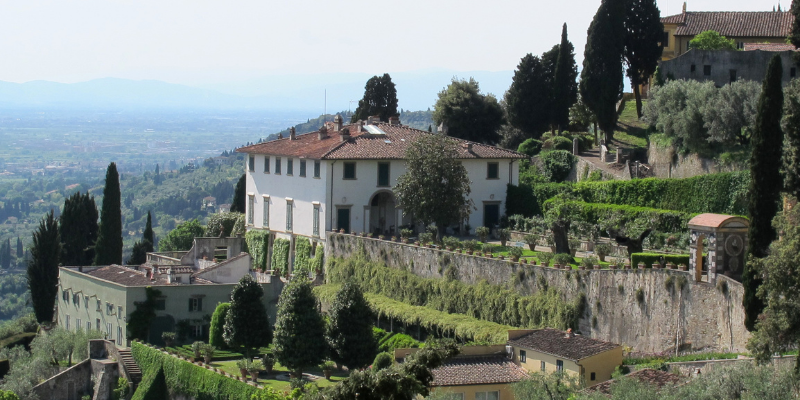A diferencia de las anteriores villas de los Medici que fueron todas adaptadas de estructuras más antiguas, la Villa Medici en Fiesole fue construida ex novo. Lo primero que salta a destacar es la impresionante vista sobre Florencia, fue construida por Michelozzo en el Siglo XV. El jardín de la adyacente Villa Le Balze fue diseñado por Cecil Pinsent para el filósofo americano Charles Augustus Strong como un renacimiento del ideal del Renacimiento italiano, y es posiblemente el más encantador y mejor conservado del trabajo de Pinsent. Por la tarde, visitamos Villa La Pietra, una vez propiedad de Sir Harold Acton, y originalmente construido por Francesco Sassetti, director general del banco de la familia Medici en el siglo XV. Hay un jardín italiano, formal pero imaginativo, y muchas esculturas.