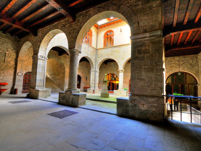 La historia de este valle está ligada a la de los condes Guidi di Poppi, que construyeron castillos no sólo en su ciudad natal, sino también en Romena, Porciano, Montemignaio y Castel San Niccolò. Imaginando que comenzamos nuestro breve recorrido desde Poppi y su imponente castillo, descubriríamos, entre los atractivos de este bonito pueblo, el Oratorio de la Madonna del Morbo y la abadía de San Fedele. En Pratovecchio, ciudad natal de Paolo Uccello, merece la pena visitar la iglesia de la Propositura, así como, en Romena, la espléndida iglesia parroquial de San Pietro y el castillo. Di Stia son características las arcadas del curso central y la elegante iglesia parroquial de Santa Maria Assunta, donde se guardan obras de extraordinaria belleza. Recostado en la colina de enfrente se puede ver la imponente torre del castillo de Porciano. También son notables las iglesias parroquiales de los Santos Ippolito y Cassiano, la iglesia de San Lorenzo, decorada con terracotas de Della Robbia, el Oratorio de los Sagrados Estigmas y el pueblo de Ortignano Raggiolo, donde se puede admirar una hermosa iglesia parroquial románica y el Museo de la Castaña. . Finalmente, Castel San Niccolò y Montemignaio son dos ejemplos particulares de pueblos encaramados construidos alrededor de castillos, que aún hoy se pueden visitar y están perfectamente conservados.